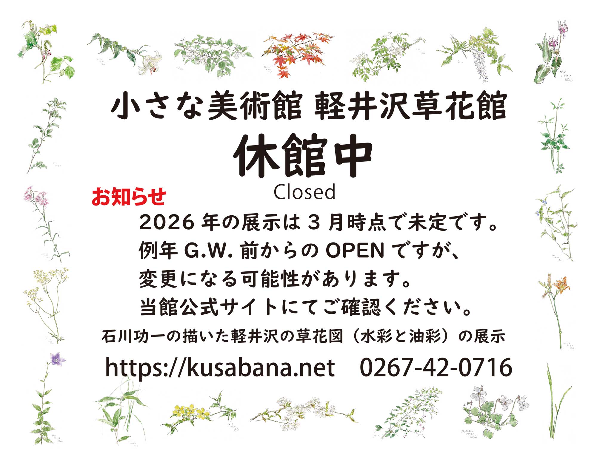 軽井沢の自然の草花を描いた画家・石川功一の個人美術館の公式サイト。 草花画を中心とした水彩スケッチと油彩画の企画展を開催。